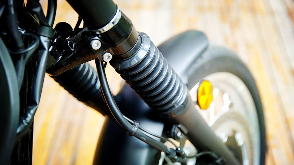 正立式前叉显得中规中矩,防尘橡胶套看起来古香古色,再加上后部的双筒减震器,这套悬挂系统就像是上个世纪六七十年代的行头。