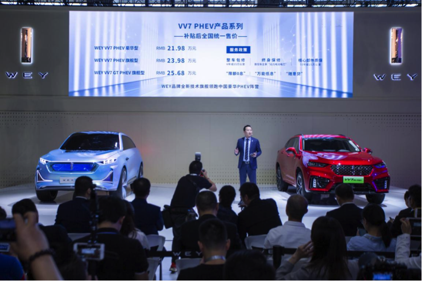 此次广州车展,自主豪华品牌WEY对旗下两款高性能插电混动车VV7 PHEV与VV7 GT PHEV进行了全球首发上市。其中VV7 PHEV提供2款车型,分别为售价21.98万元的豪华型与23.98万元的旗舰型,而VV7 GT PHEV的售价则为25.68万元。