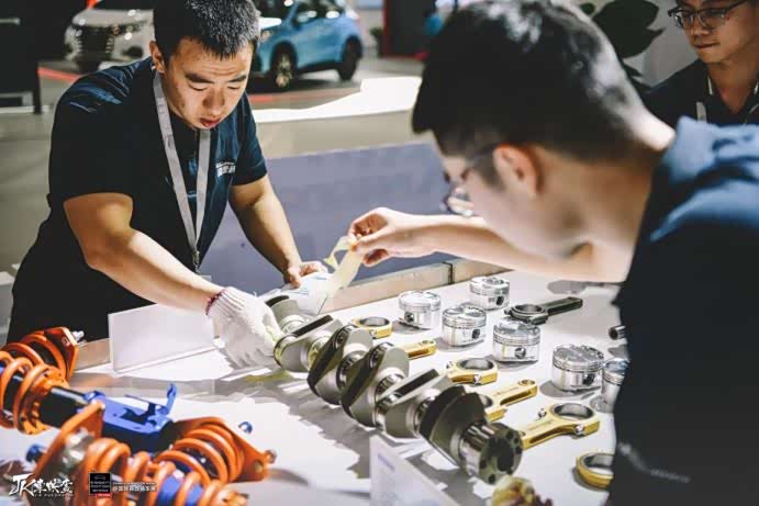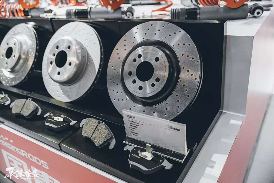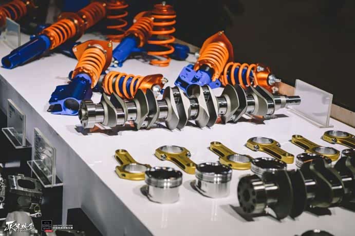 国贵科技的展台上与HP4战车一同亮相的还有刹车盘、刹车片、涡轮等各种原厂易损件或消耗件,更有ECU、活塞、连杆、曲轴、避震器等高性能改装件