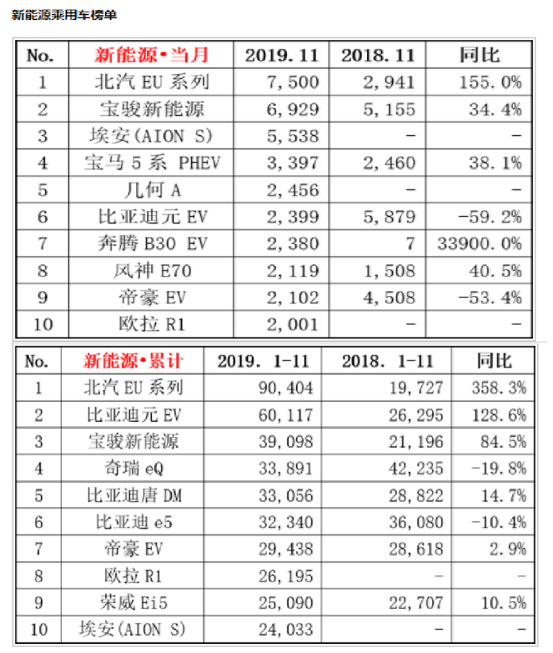 编者按:11月新能源车销量还算看得过去,但不知12月如何呢?2019年全年销量又到底是呈现什么新的境况呢?车业杂谈将持续关注。