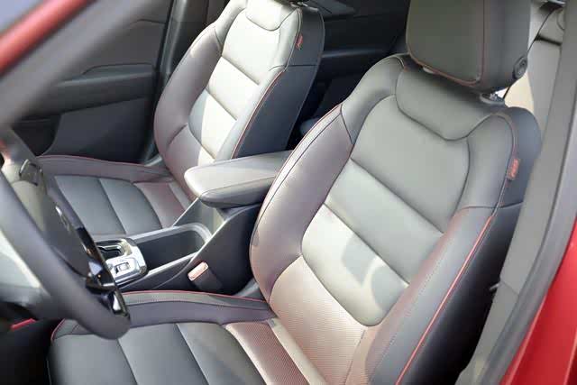 前排座椅采用了双拼色打孔皮,触感舒适。座椅座椅发泡棉材质软硬适中,既能够对驾驶者起到足够的支撑作用,也不会太硬带来不舒适感。扶手箱就显得有些偏小了,在实际驾驶中,起到的承托作用比较有限。我更喜欢老创酷上那个看起来不怎么好看,但用起来承托干无比舒适的翻折式扶手。