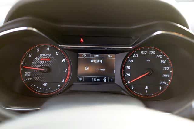 蝴蝶形仪表盘的样式相对比较传统,左右两侧分别是转速表(油表)和时速表,中间的液晶屏则可以显示一些车辆的相关信息,这一切似乎都没有太多的新意。好在仿碳纤维的仪表底纹和RS标志算是仪表盘中的一抹亮色,大大提升了仪表的视觉效果和战斗感。