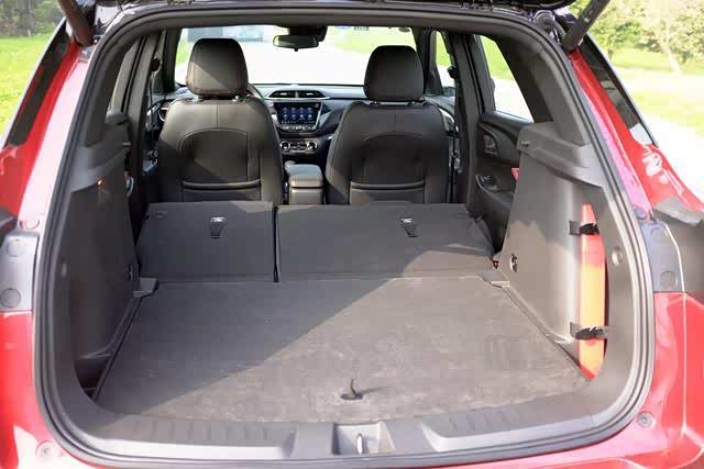 根据雪佛兰官方提供的数据,这台车的后备箱空间为359L,或许是四驱传动系统占据了部分空间,其他几款车型的后备箱空间均为375L。这样的后备箱空间,在紧凑级SUV中似乎不占太大优势。毕竟是田忌赛马嘛,雪佛兰本身是用这款小紧凑级SUV和其他品牌的小型SUV竞争的。好在后备箱空间是比较平整的,后备箱搁板是可以上下格调整的,上图中搁板处于上格位置,这样放平后排座椅后,会形成一个巨大的纯平空间,即使搬家需要放置大件行李,也统统能够满足。