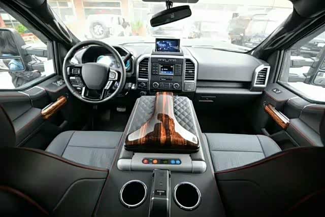 乔治巴顿内饰方面:经过高档双色真皮重新包裹,搭配木纹饰板点缀,使得原本就宽敞霸气的内饰更显豪华。细节方面,乔治巴顿车身侧面延续了粗犷的设计风格,外跑的轮眉、见棱见角的车门以及其本身超长的轴距尺寸,看上去就不是好惹的。