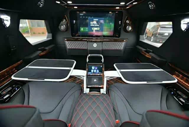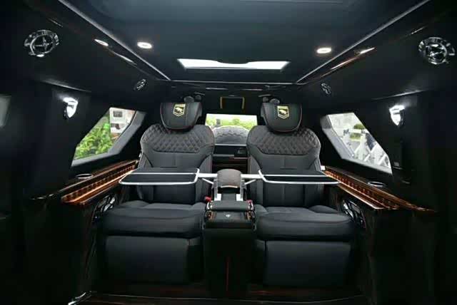 2019新款乔治巴顿装甲越野商务车四座/六座车内布局一定会被想象成战车那种简约硬朗的驾乘风格,但是当您拉开车门,车内所展露的豪华设施定会为之而惊讶内饰,座椅纯手工缝制,看上去非常舒服,有着一种优雅古典的格调。