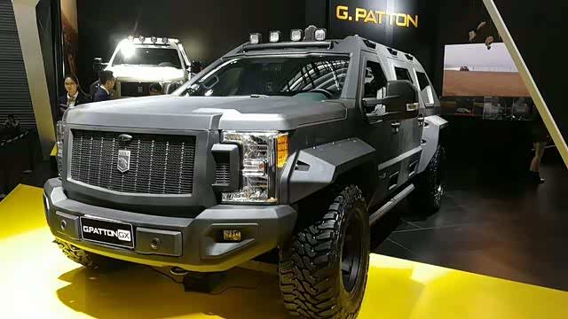 乔治·巴顿战车充分演绎了“硬汉座驾”的品牌精髓,外观采用了装甲车般的设计风格,C字形前大灯组造型使该车辆看起来十分霸气。此外,全车被磨砂黑车漆涂装配合高挑的轮眉,一切都昭示着这款车的狂野气质。