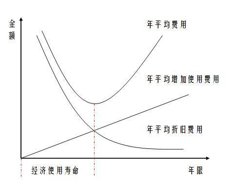 这个平均使用成本呈二次函数图形曲线,也就是说,中间的某一年把车卖掉,是最合算的,这就是经济使用寿命。