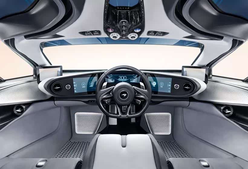 不过在内饰上,迈凯伦也并没有含糊,驾驶舱的用料包含了麂皮、真皮、铝合金、碳纤维等多种材料,还十分新颖的采用了三座式的设计,中控台则是三块大尺寸的液晶屏幕,启动按钮以及换挡按钮都被设计在了车身上部的位置,颇有一些战斗机机舱的味道。经过整体减重后的迈凯伦Speedtail将重量控制在了1430kg,相比起将近2吨重的布加迪Chiron来说简直轻了许多。