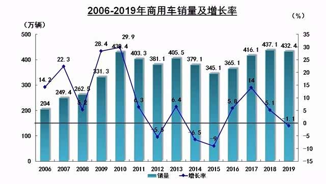 商用车市场方面,2019年全年商用车产销分别达到436万辆432.4万辆,产量同比增长1.9%,销量同比下降1.1%,产销数据好于乘用车市场。中汽协指出,商用车市场好于乘用车主要是因为基建投资回升、国3排放汽车淘汰、新能源物流车快速发展、治超加严等利好因素。