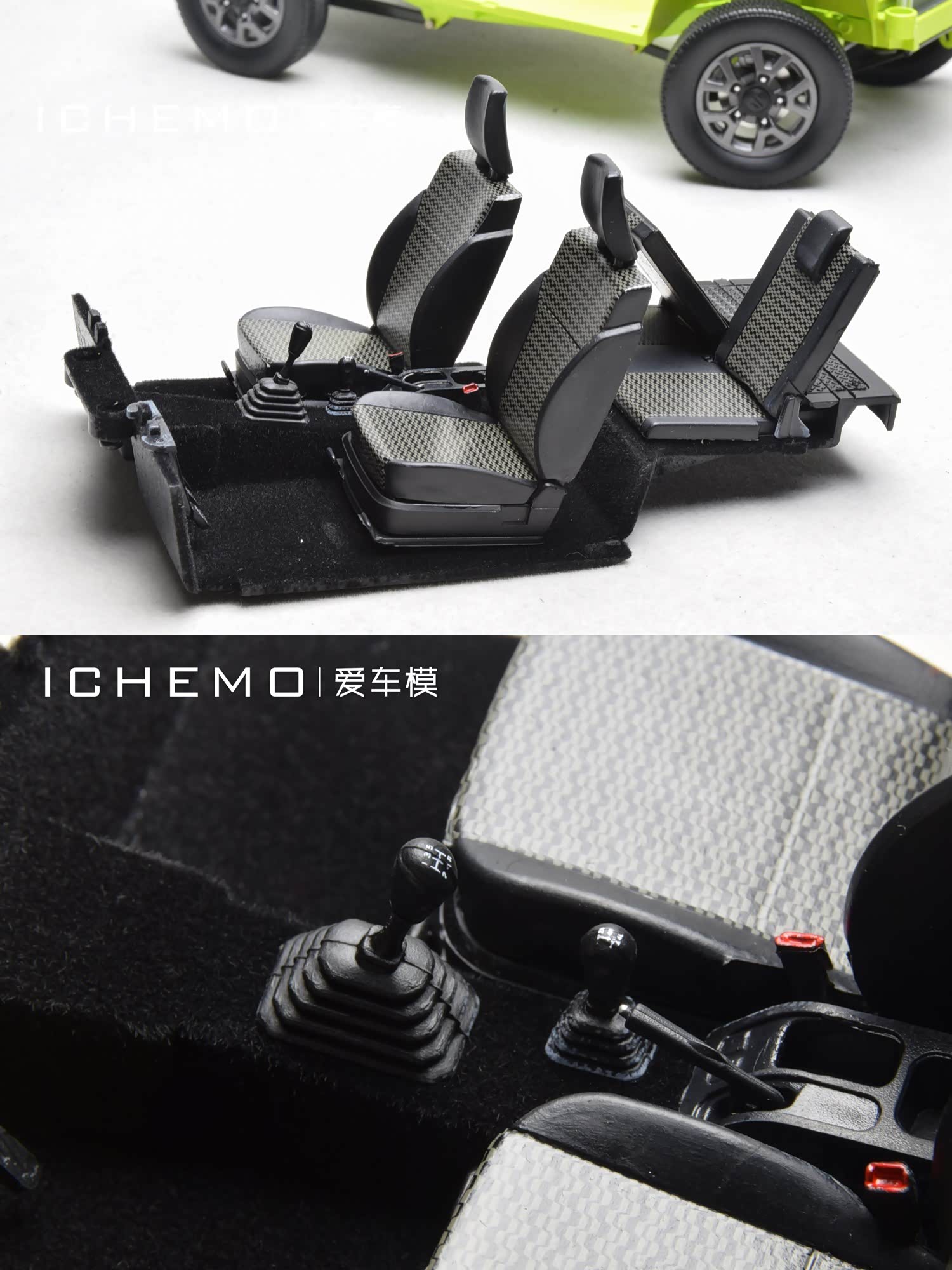 俗话说“麻雀虽小五脏俱全”,Jimny 是一台结构相对简单的汽车,但越是“简单”在将其模型化时越复杂。如果模型在还原实车极度复杂的内构时可以选择模糊或者忽略,那么机械结构相对没那么“高级”的汽车反而需要更细致的模具设计。