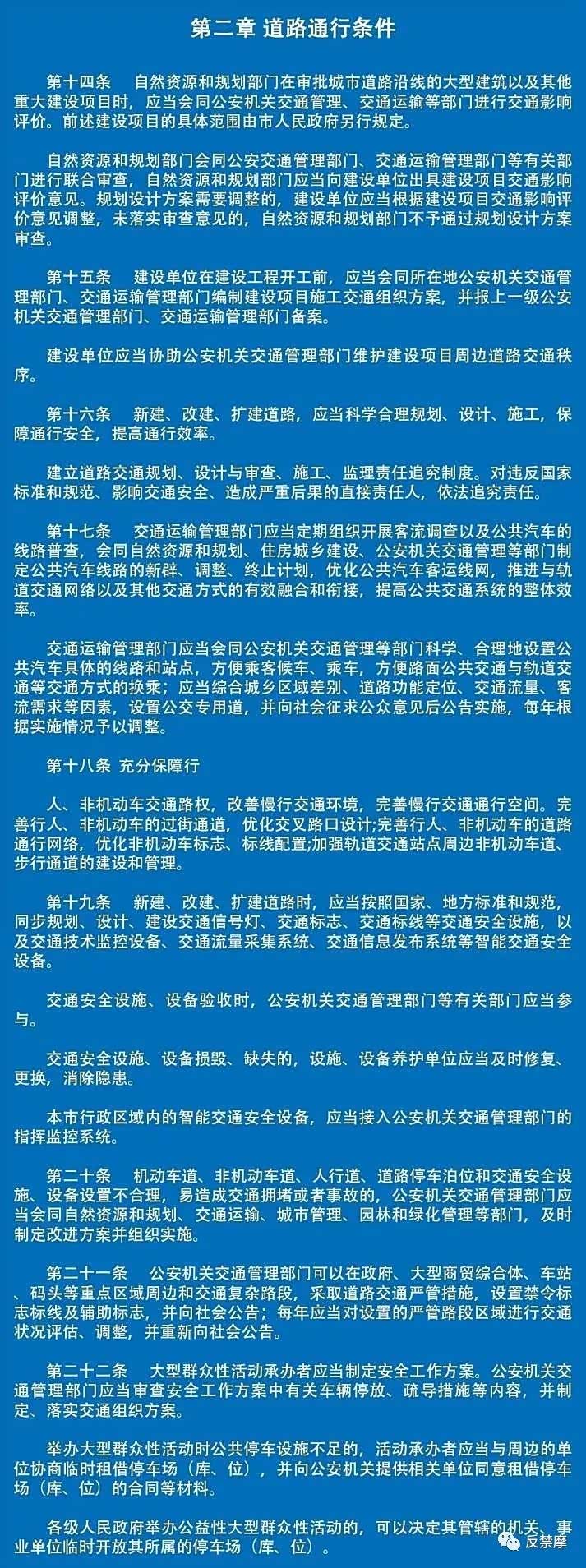 建议废除限制摩托车、非机动车通行的条款。增加限制小客车通行和数量发展的条款,合理分配城市交通道路资源。