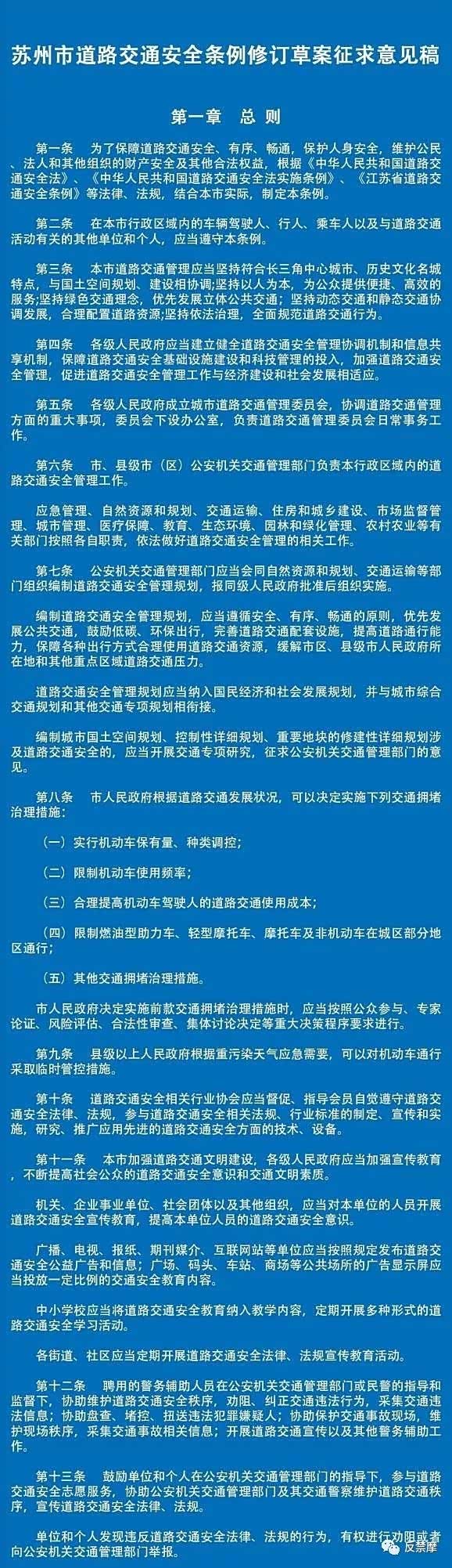 3、通过信函将意见发至:江苏省苏州市高新区新元街199号,苏州市道路交通安全条例修订立法小组。