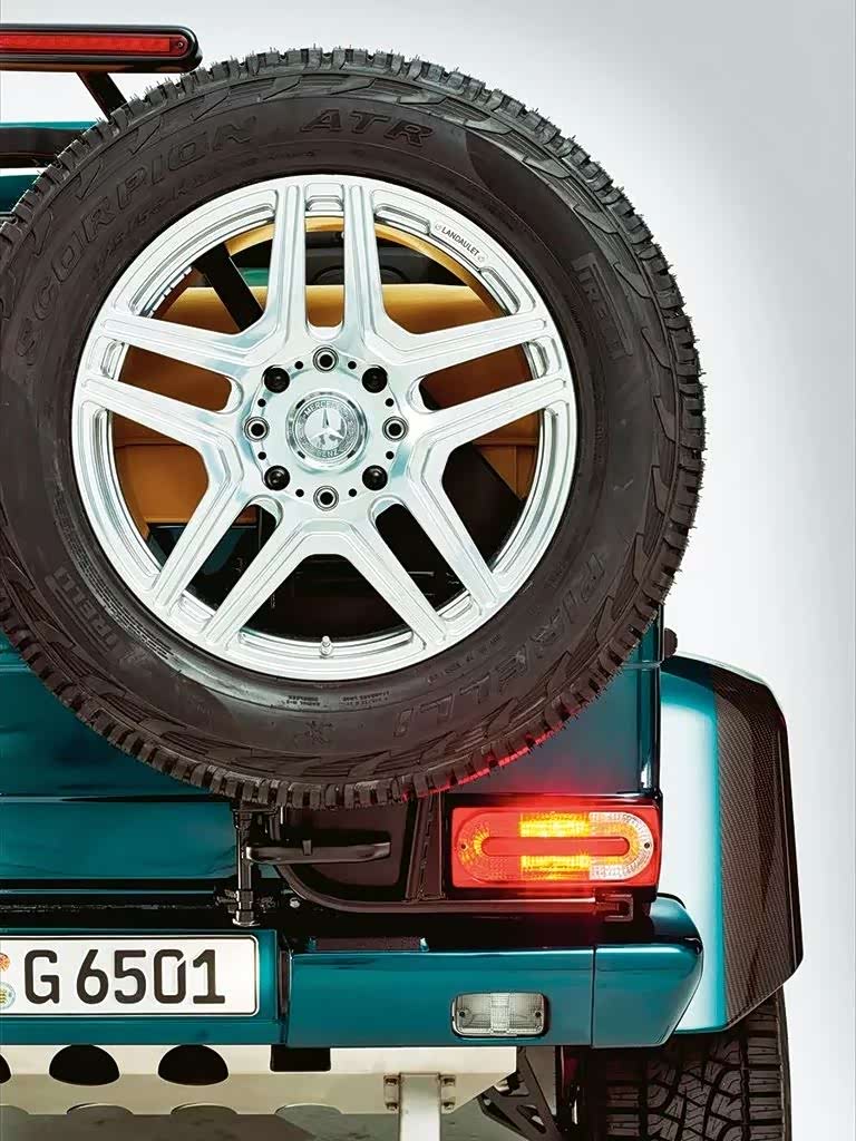 动力方面,迈巴赫G650 Landaulet搭载6.0L双涡轮增压V12发动机,最大功率463kW(630Ps),最大扭矩1000Nm,此外,该车还延续了G级强大的越野性能,除了基本的差速锁以外,325/55 R22的超大轮胎也提供了无与伦比的抓地力。