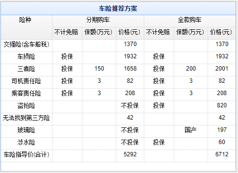 看完车我们继续聊聊大家更关注的如何上车险。同一款车,根据购车方式的不同,可选择的保险方案也不尽相同。以2019款 1.2T S-CVT GLX-i旗舰版车型为例,编辑为您奉上两套保险方案,分别针对全款购车用户与分期购车用户,具体条款与价格如下图: