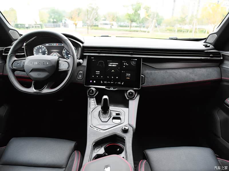 内饰方面,领克05采用了全新设计风格,整体充满着不错的力量感。中控台部分,领克05采用了环抱式驾舱设计,配合几何线条的运用让层次感十分丰富,而像平底方向盘、高敏手势触控板、电子挡杆和运动换挡的加入,则突出座舱的战斗气息。科技感方面,领克05的12.3英寸全液晶仪表盘不仅效果出色,而且支出主题切换和导航地图全覆盖功能,而12.7寸的中控大屏除了当下主流功能的支持外,还提供了多款生活服务类应用程序,整体功能十分丰富。