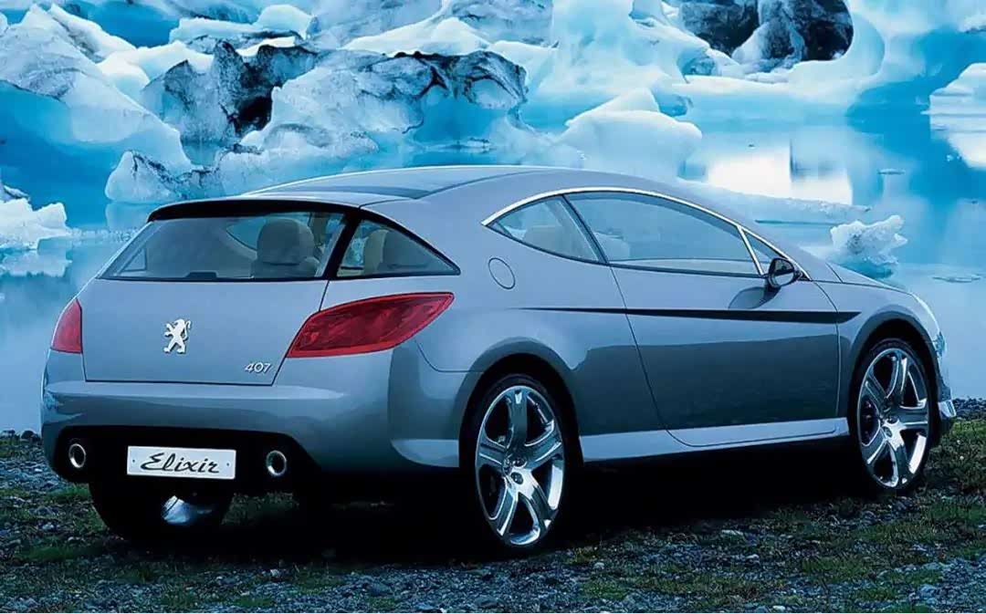 陡峭的挡风玻璃和简洁的动感车身成为了标致新时代的设计语言。一体式大包围上镶嵌着大方的进气格栅,407 Elixir采用了猎装车的优雅比例,从设计到细节都非常精致。大尺寸镀铬轮毂和全景天窗让407 Elixir在2003年的车展上大放异彩。