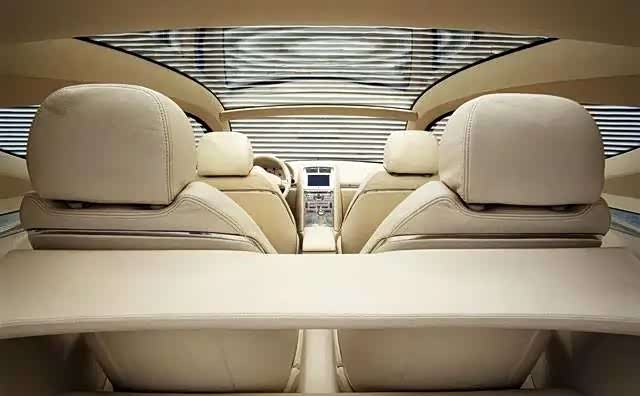 全景玻璃充满了华丽与精致,其车身看上去非常庞大,长度达到了5000mm,宽1948mm,轴距为2950mm,高度只有1355mm。