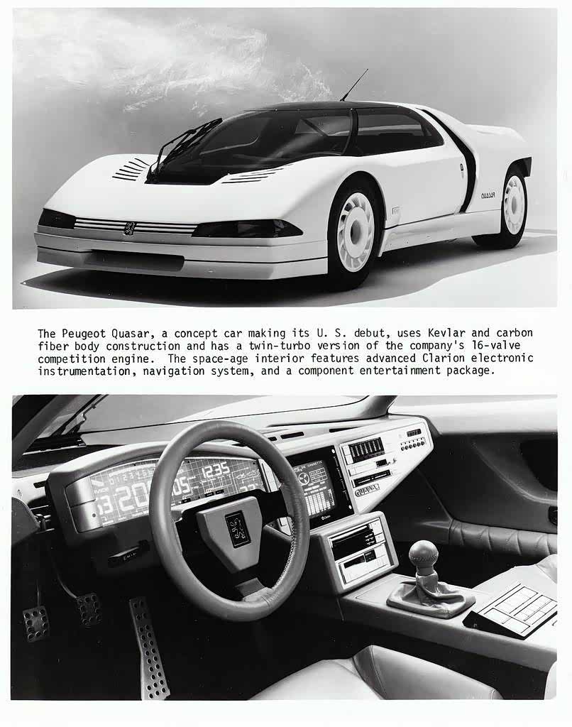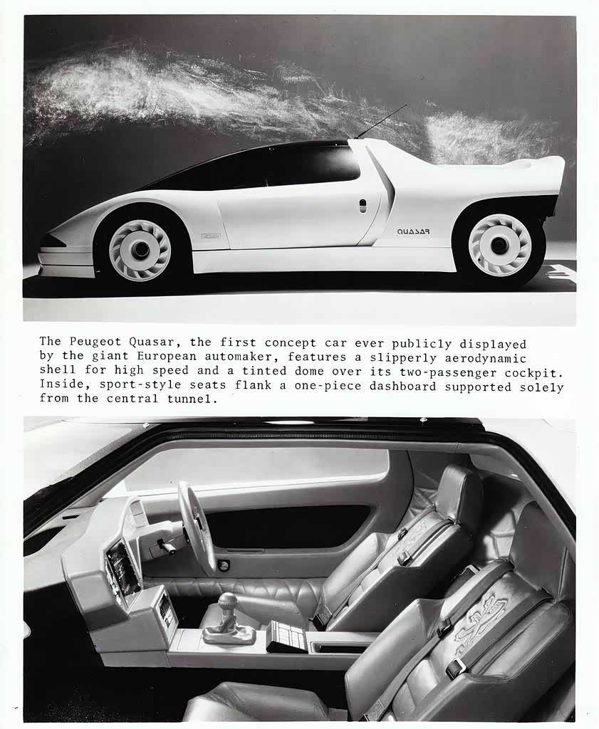 1984年推出的概念车-Quasar,与标致205 T16采用了相同的底盘,外壳却被做成了超级跑车的样式,扁平化的造型与205的家用轿车风格完全不同。