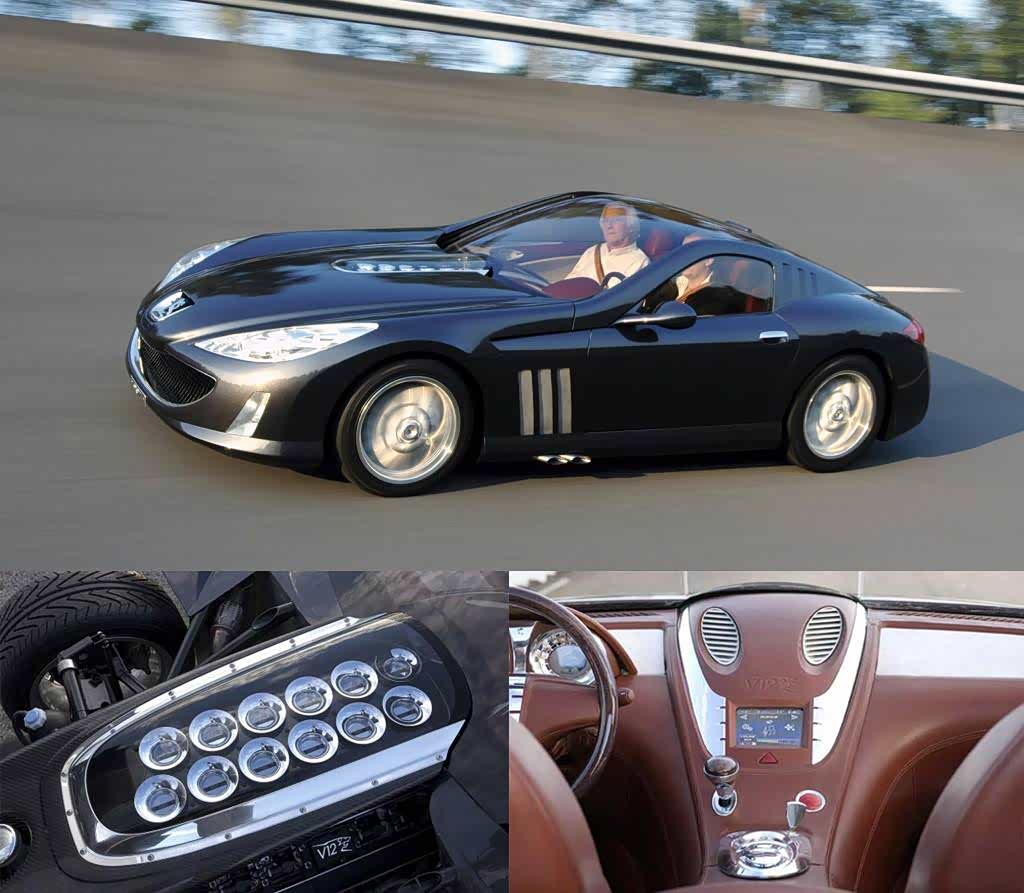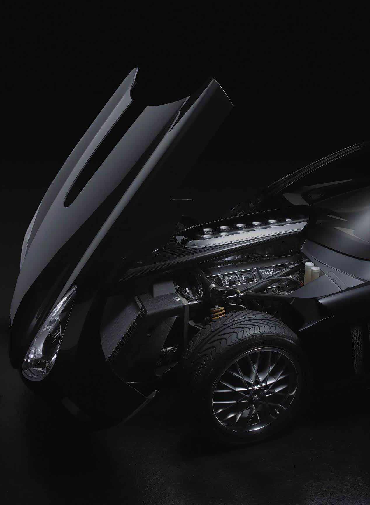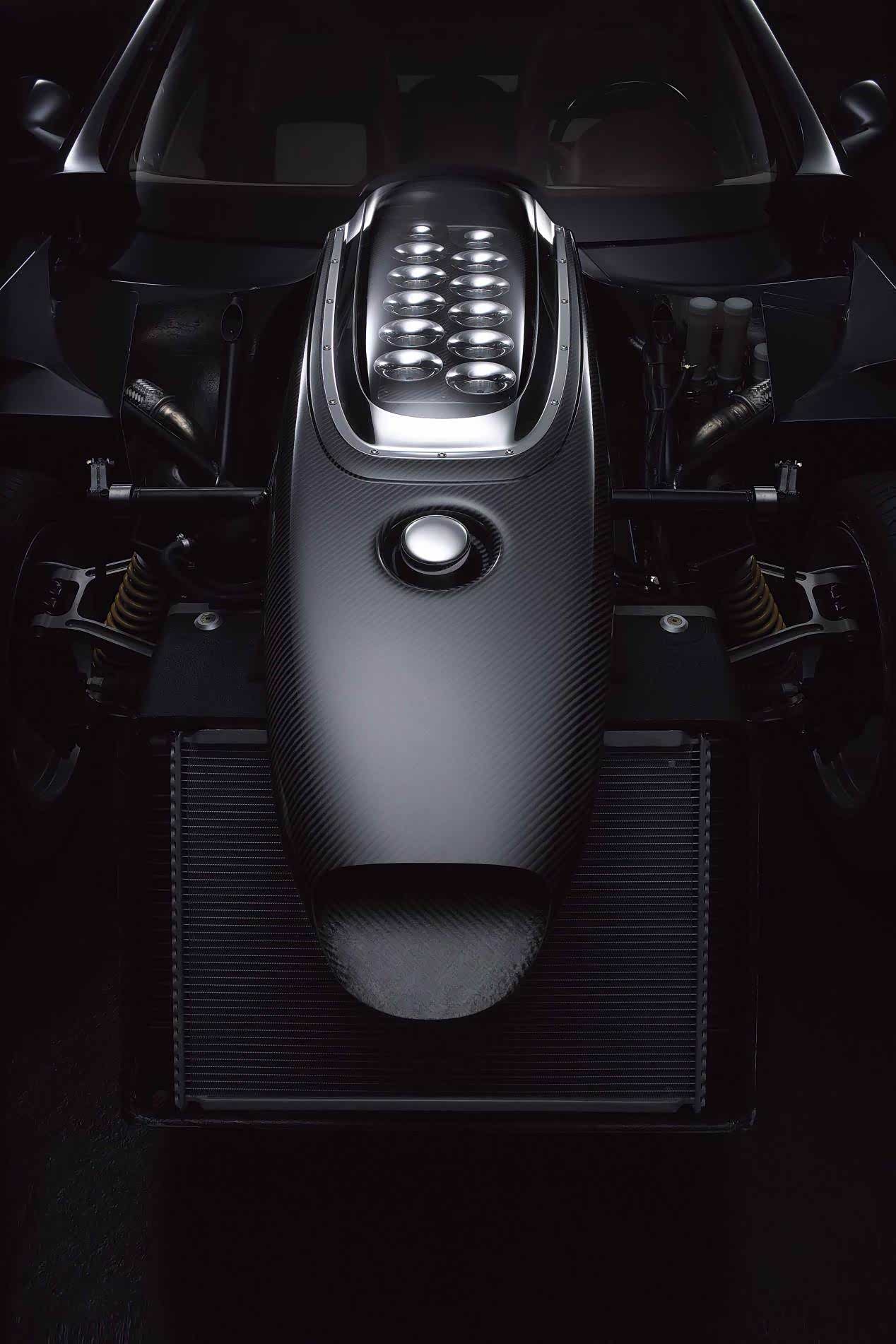 907由碳纤维车身进行覆盖,引擎则由两台3.0L V6发动机进行拼接,引擎盖采用了部分透明材质,暴露出来12个进气喇叭。