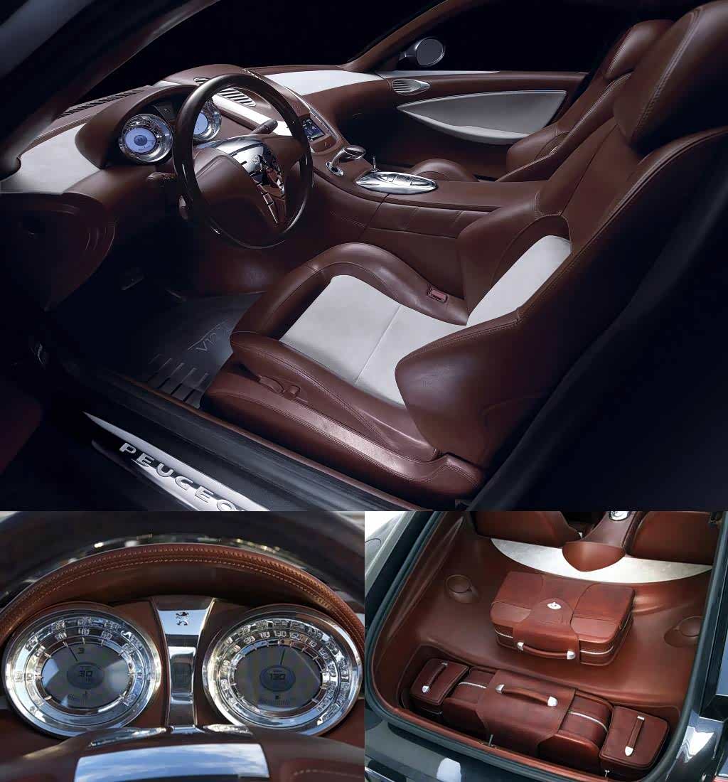 棕色真皮,Alcantara以及实木饰板都出现在这辆车的内饰上,此外车内还专门腾出了一个空间来放置行李箱。豪华氛围一点也不少,唯有仪表中央的狮子logo提醒着你这是一辆标致。