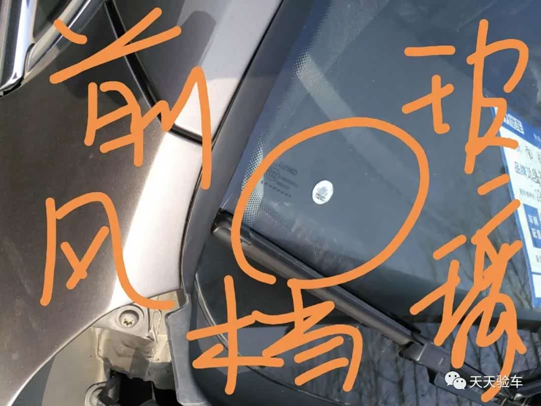 前风挡玻璃就更容易查看的,明显的标签,大家可以细心留意一下新车前风挡玻璃是不会出险这种标签的,至少我是没有见过,明显的就是前风挡玻璃更换过,至于说是事故导致,还是其他原因导致的更换,至少应该引起购车人的注意