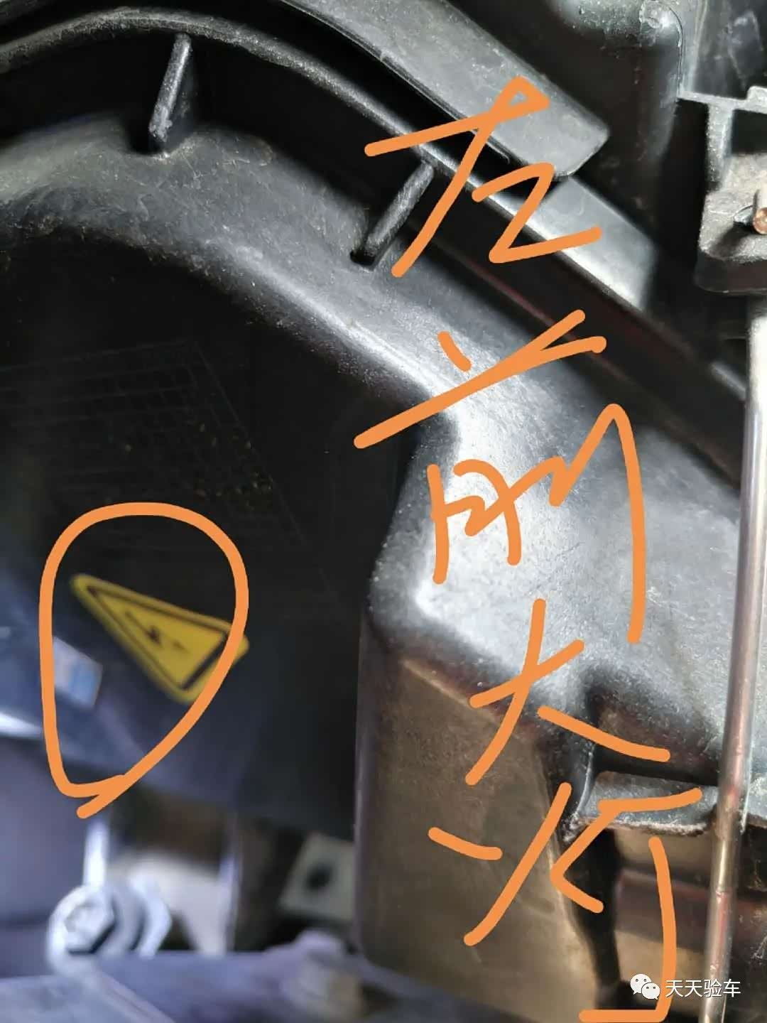前大灯质保标签还在明显更换过,并且连质保日期都有,基本可以判断车辆发生大灯更换的日期