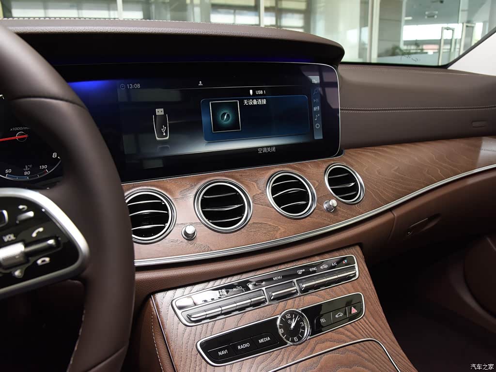 内饰是奔驰E级的核心优势。连体超大屏加稍显复古的中控台造型,且营造处一种环绕分为,优雅而又不乏科技感。E级的触控板为新一代产品,全系标配无钥匙启动、12.3英寸液晶仪表,三幅式方向盘为真皮包裹,握感舒适。多媒体大屏同样为12.3英寸,下方的空调控制区保留了物理按键,阻尼均匀、操作便捷。