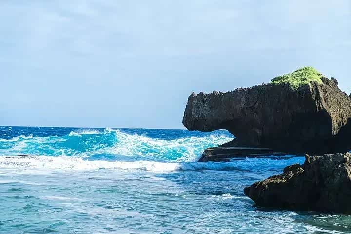 鳄头海滩。这里浪头非常大。因旁边那块大石像鳄头而得名。去鳄头滩是塞班最难的路,没有租到好点的越野车,或者技术不过硬有一定要谨慎。