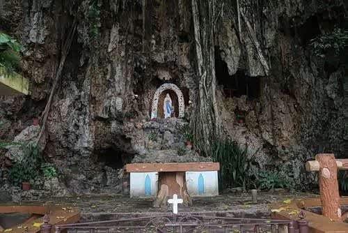 圣母洞。是塞班岛唯一的一口淡水井。据说是圣母指引下发现的,所以在这里供奉圣母。