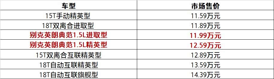 售11.99-12.59万元 别克英朗典范上市