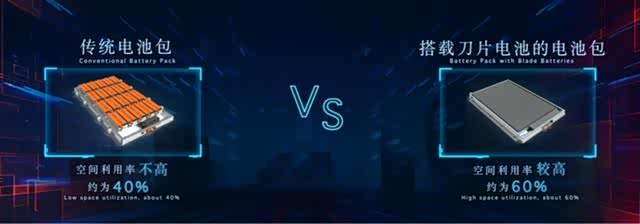 在说动力电池为什么会自燃时就有提到,刀片电池本质就是磷酸铁锂电池,那么磷酸铁锂电池的特性在刀片电池上也存在的。不同于传统的磷酸铁锂电池,刀片电池通过结构创新,大幅提高了体积利用率,最终达成在同样的空间内装入更多电芯的设计目标。这样一来刀片电池的能量密度就得到了有效提升,一下解决了磷酸铁锂电池能量密度低的问题。据比亚迪称相较传统的有模电池包,刀片电池的重量比能量密度可达到180Wh/kg。相比此前有模电池组提升大约9%,电池在同等体积下能量密度上比传统铁电池提升了约50%。而采用新结构的刀片电池,表面积更大,散热也会更快,所以在发生过热时也可以快速散热,保证安全性。
