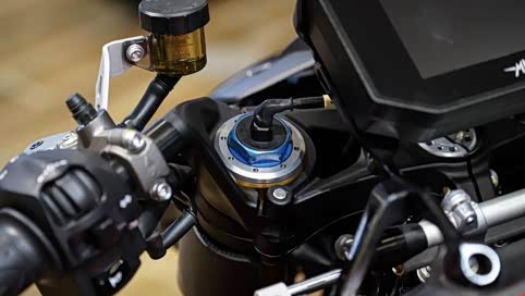 Ohlins制EC电子防甩头可以根据车辆速度调整阻尼强度.让车辆在低速时。转向顺畅.高速则电脑会自动调高阻尼强度.让Brutale 1000RR在极速时保持车头稳定。