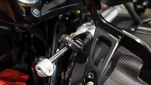 Ohlins TTX后避震器也是电子式的.可依据车速自动进行调整. 另外后方的顶杆则可以调整车辆高度。
