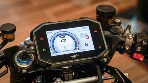 仪表采用5寸TFT液晶显示.画面右侧可切换不同的资讯.通过左把手开关,可以调整防孤轮设定、ABS刹车系统、TC循迹系统的段数调整等,引擎管理系统为Eldor最新版本的EM2.0。电子油门具有Sport/Race/Rain/Custom四种模式的选择。
