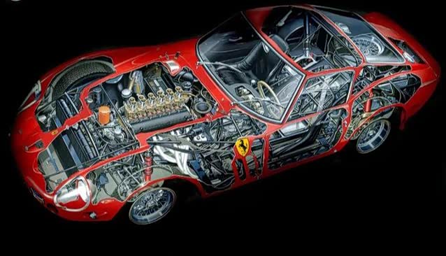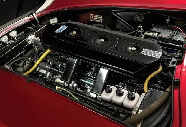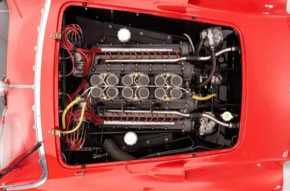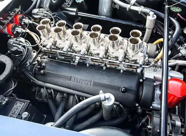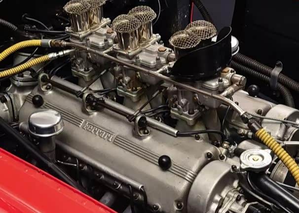 图:这台就是法拉利早年几乎是唯一的民用车型V12引擎的其中一个变种:Tipo 168 Comp/62,六颗化油器、三公升300匹,升功率100匹是最大的亮点了。