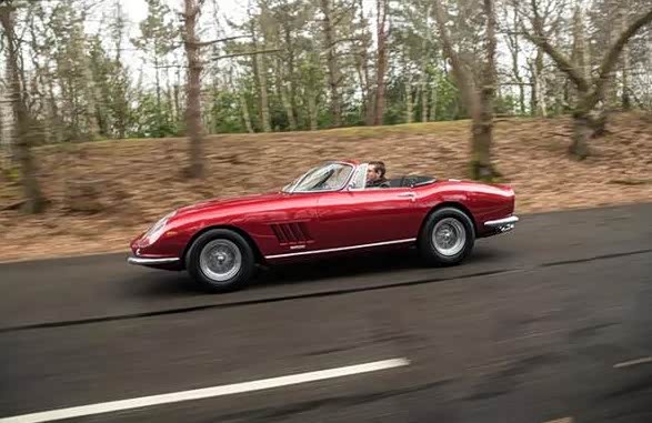 被认为是“最美丽法拉利之一”的法拉利250 GT SWB California Spyder,车身由著名的宾尼法利纳(Pininfarina)设计,它在欧洲、在车厂的定位里,是一台类似于今天488 GTB那样的定位,不过它是一台用于日常使用与长途旅行的轻量化GT,在1957年至1962年一共只生产了区区106台,除了SWB短轴距版外,还包括了名为LWB长轴距版本。它搭载一台使用三个Weber韦伯下吸式化油器的3.0L单顶置凸轮轴V12发动机,拥有280PS马力,前置后驱布局,还有一个4速手动变速箱。