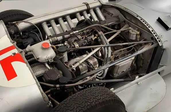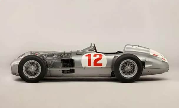 梅赛德斯奔驰(Mercedes-Benz)一级方程式赛车W196,是W194的继任者,参加1954至1955年的世界跑车锦标赛赛季。1954年的一级方程式规则只允许使用2.5L自然吸气或者0.75L的机械增压发动机,最初奔驰是使用一个0.75L机械增压的发动机,增压的压力为450kpa,驱动这个增压器需要消耗100匹马力,而发动机马力为390匹。后来研究发现这台发动机燃油消耗量比自然吸气发动机高出了2.3倍,最后使用了一副改编自二战时期使用Messerschmitt (梅塞施密特)BF 109E战斗机上的V12发动机,使用了奔驰自家开发的机械燃油直喷系统和desmodromic阀技术。W196是唯一使用这样先进技术的赛车,相比其他赛车都用化油器的发动机,它有着相当大的优势,这台2.5L的发动机在10000转时输出340匹马力。