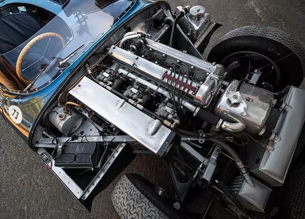 245PS马力,3,442 cc DOHC直列六缸发动机,配备三个Weber 45 DCO3化油器,四速手动变速箱,独立前悬架,就是D-Type的基本参数。为了使发动机有更低的高度,捷豹总工程师William Haynes与宾利前工程师Walter Hassan共同开发了干式油底壳润滑系统,据说是为三个Weber化油器的油管提供额外的空间,减少底部的空气阻力,使赛车有更好的空气动力学效率。