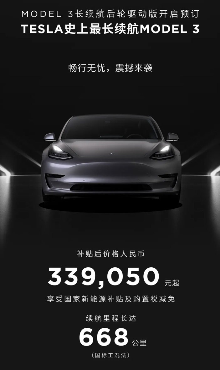 入手国产版Model 3的朋友也认为自己赚了,没想到的是特斯拉宣布国产Model 3长续航后驱版以及Performance高性能全轮驱动版正式上市,两款车型售价分别为33.905万元(补贴后)、41.98万元(补贴前)。