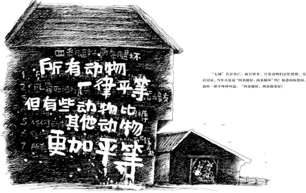 第二天我脑中还叨念着《动物庄园》里的经典语录「凡动物一律平等,但是有些动物比其他动物更加平等」。准备去找李大爷聊聊这本1945年首次出版,屡屡被禁的“预言书”。