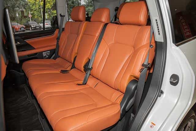 在内部乘坐空间方面,雷克萨斯LX570的表现也很不错,首先要说的是前排头部空间。众所周知,这类大型SUV车型在空间方面有着先天的优势,因此一般头部空间都非常充裕。身高1.79米的体验者把座椅调至最低,并调节好适当的驾驶坐姿后,头部有一拳多的空间。保持前排座椅的调节不变,并第二排座椅调节到最前的位置,当体验者坐在后排做体验时,头部和腿部都有一拳的空间。而它的第二排中央位置的空间也尚算可以,有头枕、地板平整、脚掌空间也足够宽松。即使身高有1.79米的体验者坐在这个位置时也相当轻松。前两排座椅均是保持之前的调节不变。当体验者坐在第三排做体验的时候,头部和腿部都已经没有空间剩余,且略有压抑感。我相信如果体验者是身材小一点的女生和儿童的话,舒适感应该会不错。