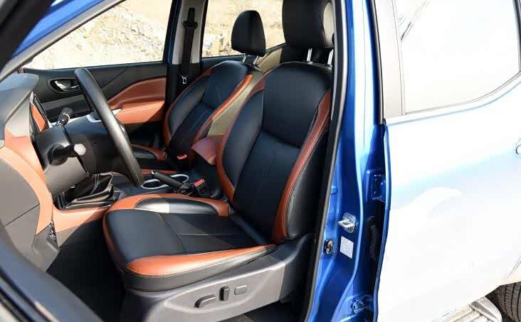 新款锐骐6的内饰整体延续了老款车型的设计,黑棕双色搭配带来了不错的档次感,同时配置也比较值得肯定。包括博世9.3版车身稳定系统、8向电动调节座椅、9英寸中控屏、全景影像等在高配车型上都有配备。