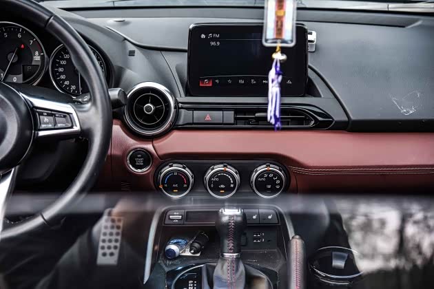 MX-5就不一样了,无论是视觉效果还是实际的触觉效果,这台车的内饰都精致得多。而且这台车在出厂时就给你配了一套不输BBA的多媒体系统,这在一辆日系跑车上来说已经是非常奢侈的配置了。但MX-5有一个缺点,那就是它的乘坐空间感太压抑了,这台车空间小到我175cm的身高坐进去愣是让我有了身高190cm的错觉。但如果你是真爱这台车的话,那空间小肯定也不是问题,因为这台车的主人身高将近190cm,我看他每天开这车的时候都笑呵呵的。