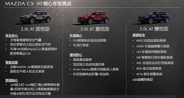 车家号·0浏览·2020-04-27 10:46 · 广东4月26日,长安马自达CX-30正式开启预售,全系2.0L动力共推出8款车型,官方预售价区间为12.99-17.69万元。