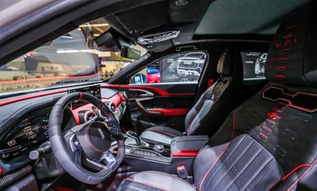 内饰方面,中控台采用了红黑撞色设计,主副仪表板、空调出风口、车门把手等处同样被大量碳纤维材质装饰,顶篷与立柱饰板则采用了黑色Alcantara材料,营造出高端气场的顶级性能驾驭氛围。