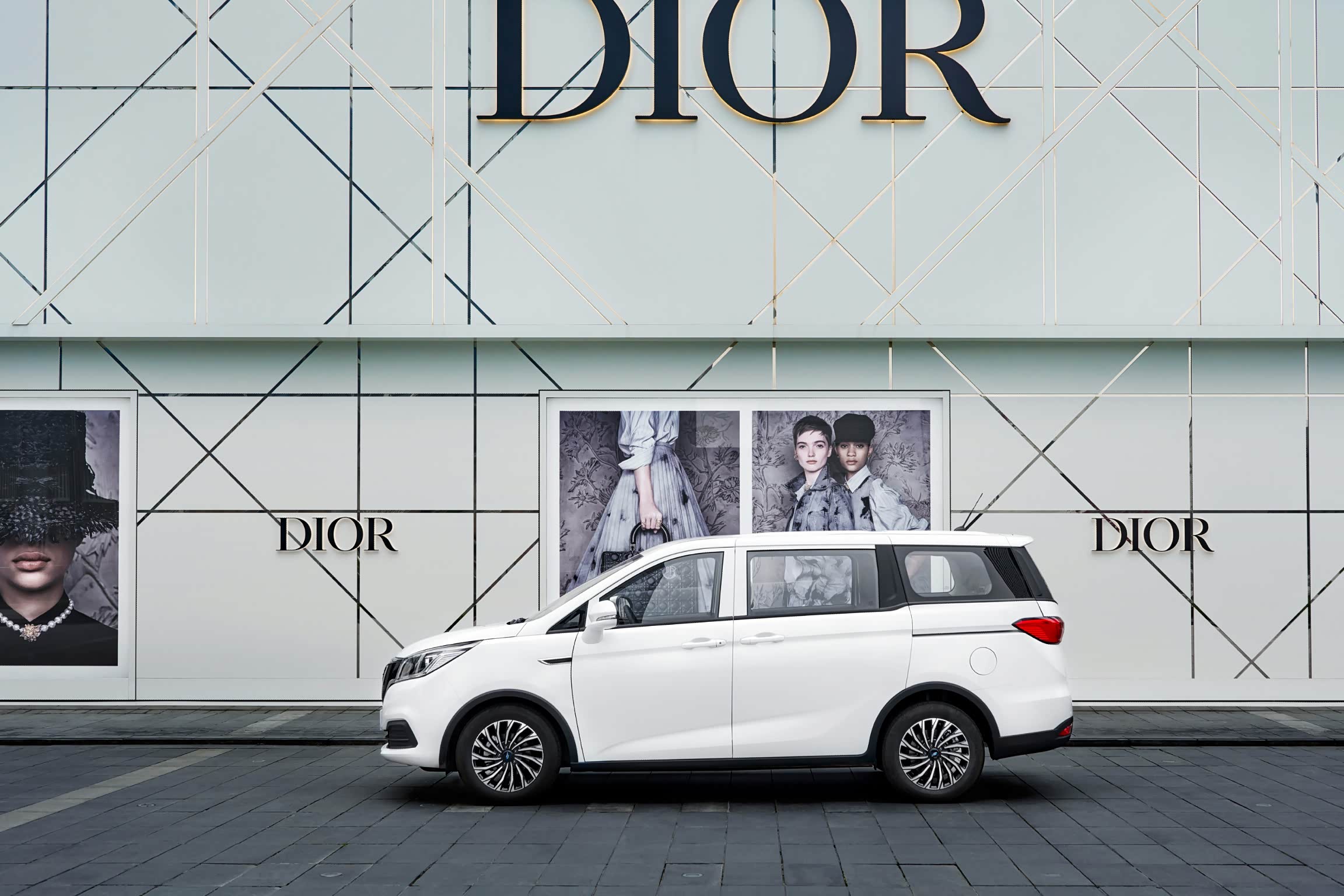 新车侧面,整体的轮廓较为方正,采用了悬浮式车顶的设计,以及多辐大尺寸轮圈,车门实用的是侧滑的设计。车身三围分别是4840/1860/1840mm,轴距为2820mm。