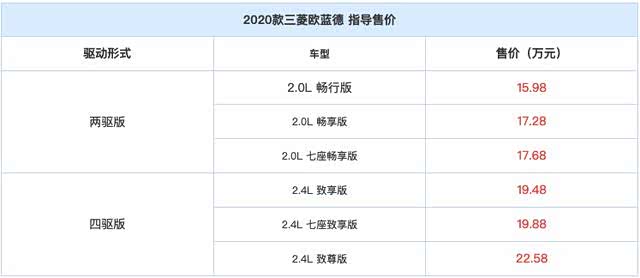 2020款三菱欧蓝德上市!皮实四缸机头166匹,共推出6款配置车型