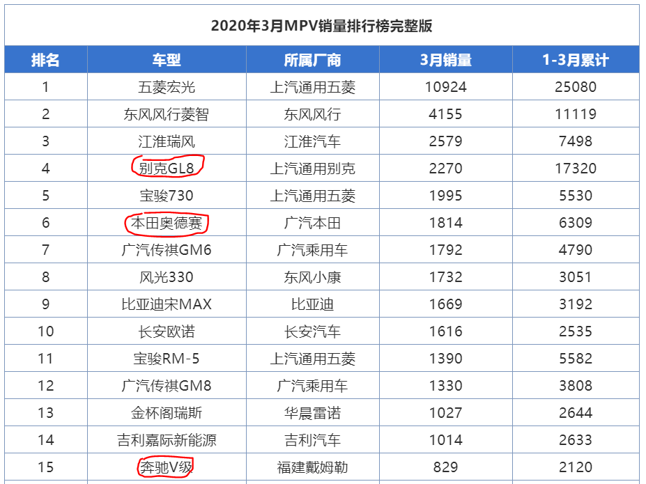 再看看3月份MPV的销量,在这个价位区间的MPV,GL8销量最高,其次是奥德赛、奔驰V级,艾力绅在前15名没有看到。