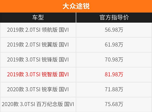 作为大众品牌SUV领域的“扛把子”产品, 途锐(参数|询价)在消费者心中的形象,就像之前的辉腾一样高高在上,虽身背“Volkswagen”的车标,但它与BBA同级车型放在一起也不输气势。3.0T的动力、空气悬架加持、8种驾驶模式可选,不仅可以让你在城市当中自由驰骋,而且还能陪你一起翻山越岭。也许很多人不理解,花80多万买一台大众是什么心理,放心,试过之后你会对这款车有全新的认知。