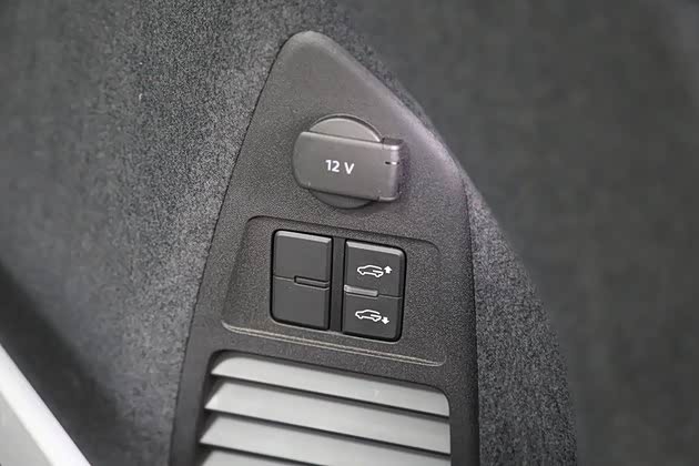 由于途锐采用了空气悬架,所以在普通模式下离地间隙依旧很高,拿取一些大件物品会比较吃力,所以尾箱里还设计了一个装载模式的物理开关,长按可升降后桥的悬架高度。